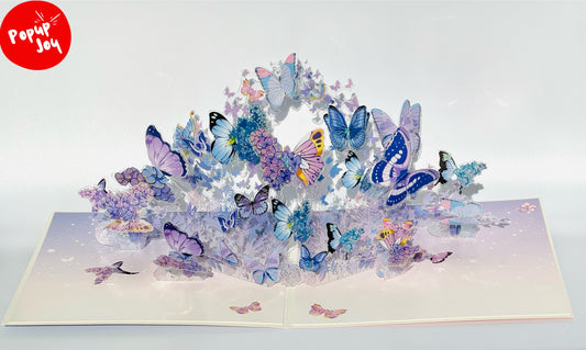 Blue 3D Butterfly Garden Pop-Up Card: Greeting Card, Birthday Card, Anniversary Card, Mother’s Day Card