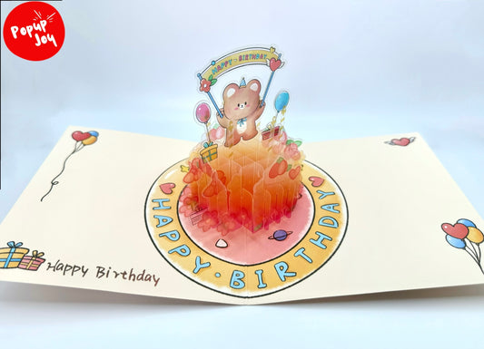 Crystal Teddy Bear Birthday Cake 3D Pop Up Card