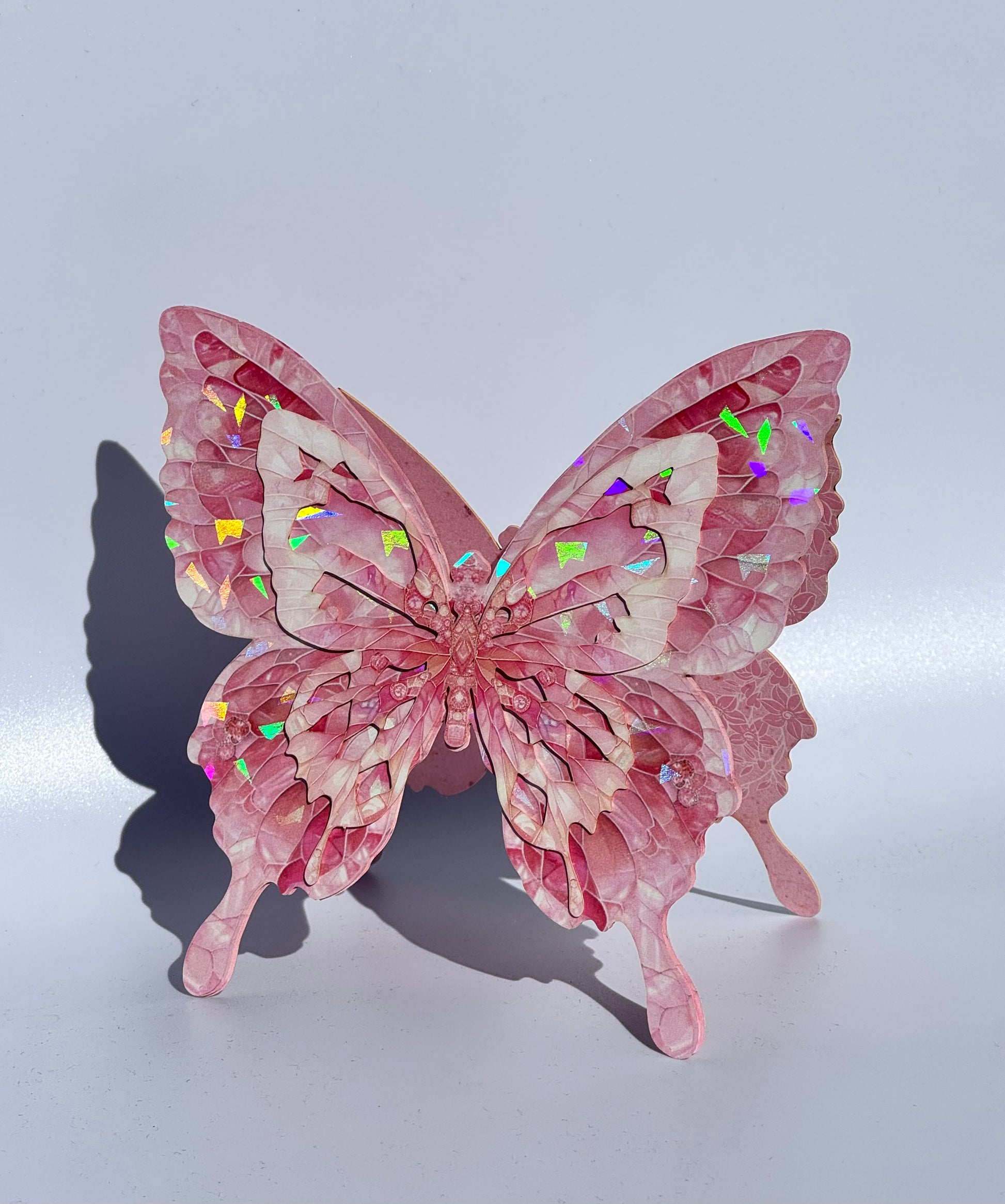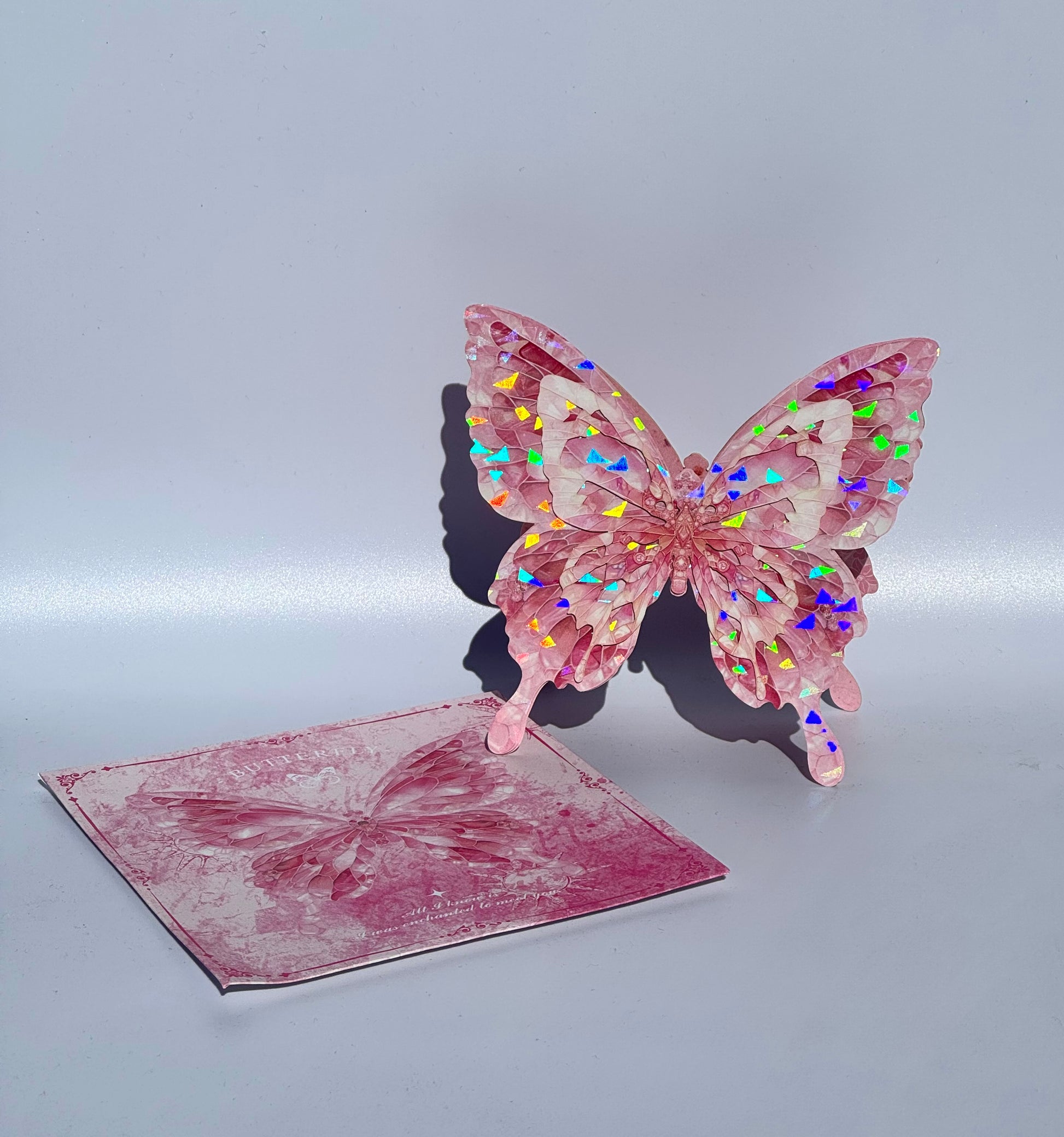 Make with high quality art paper and rainbow foil, this Butterfly Shape Ice Crystal and Hollowing Art Card is shining and dancing under the sunshine.